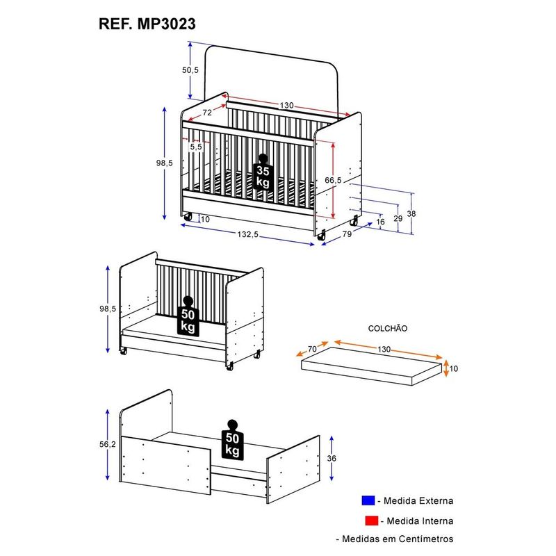 O Berço Americano 3 em 1 com Colchão Incluso e Rodízios Bambino Multimóveis é produzido em MDP com acabamento em pintura UV, o que garante uma maior durabilidade e resistência, grade Soft (PVC) que é produzida de maneira ecologicamente correta, com matéria-prima livre de metais pesados, atóxica e com proteção anti-amarelamento. O lastro possui 5 regulagens de altura e acompanha o suporte para mosquiteiro que garante noites de sono mais tranquilas. O berço é padrão americano 3 em 1 (se transforma em sofá e minicama) e certificado pelo INMETRO. O colchão (1,30 x 0,70) densidade D18, que acompanha o berço, possui tratamento antiácaro, antialérgico e antimofo e é indicado para crianças de até 3 anos.