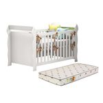 O berço padrão americano completo e multifuncional que toda mamãe sempre sonhou para receber o seu pequeno. Uma peça 3 em 1 acompanha o desenvolvimento do seu filhote, aproveitada ainda como sofá e mini cama. Fabricado em MDF e MDP, nossos bercinhos oferecem alta resistência mecânica, que garantem a segurança do seu baby. Este produto se encontra disponível nas cores Branco Brilho e Branco Fosco com Amadeirado, acompanha o colchão.