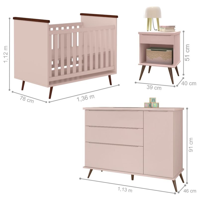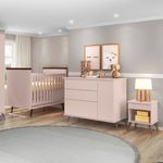 A Berço com Cômoda e Mesa de Cabeceira é a cômoda mais completa da linha, com ela você tem tudo em um lugar só.