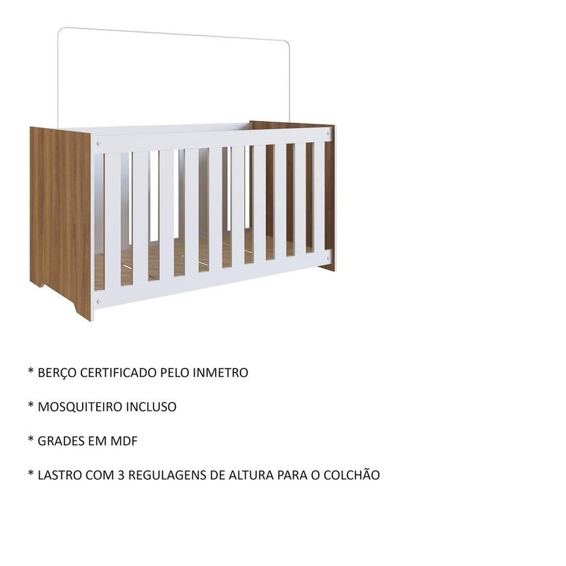 Esse modelo de berço simples é um produto que atende às normas de segurança e, por isso, é certificado pelo Inmetro. Além da estrutura resistente, as grades são em MDF e possuem espaços apenas 5 cm entre elas, ou seja, muito mais cuidado para o seu bebê. Ah, e ainda conta com três regulagens de altura que ajuda a manter a proteção à medida do desenvolvimento do bebê. Demais não é mesmo?!