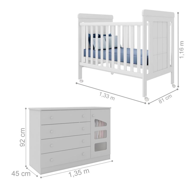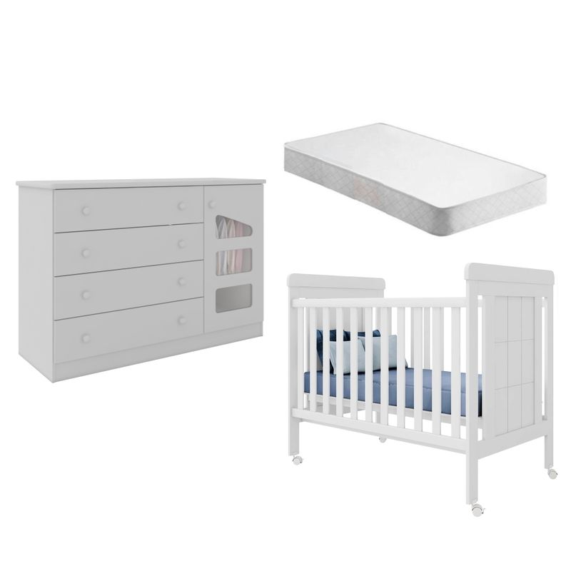A Berço e Cômoda Infantil com Colchão é a cômoda mais completa da linha, com ela você tem tudo em um lugar só.