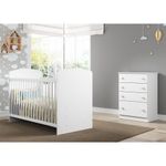 Um ambiente versátil, composto por uma cômoda e um berço que deixam o quarto do seu bebê o mais delicado.