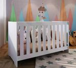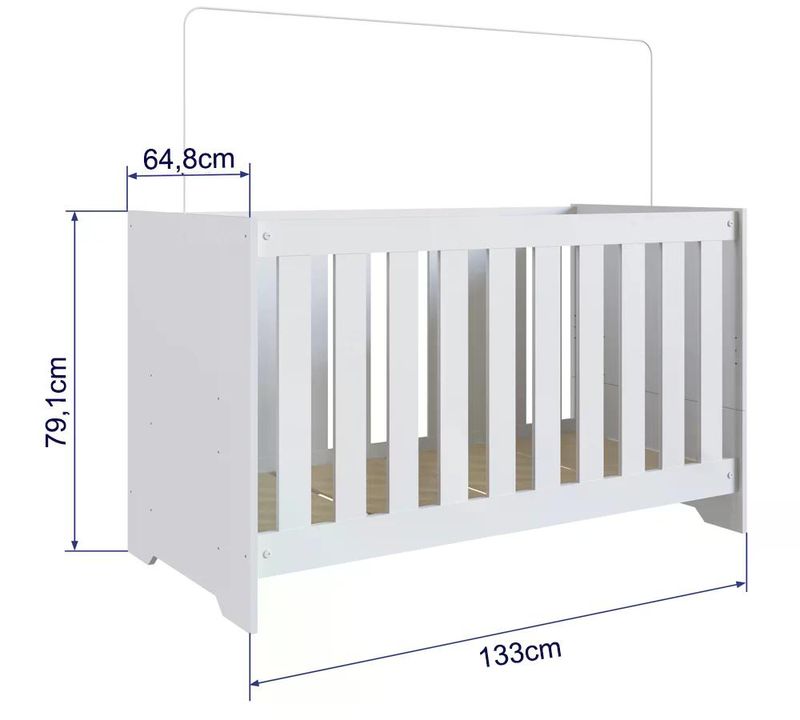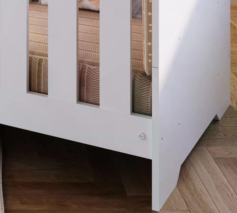 Berço Mini Cama Multifuncional 3 Em 1 - Linha Aconchego. Certificado pelo Inmetro Reg. 000771/2022. Um móvel de ótima qualidade que acompanha o crescimento do bebê, pois se transforma em sofá e depois em uma linda mini cama. Estrutura em MDP de 15mm, com acabamento em Finish Foil (Fosco). Barras que sustentam o estrado são em madeira maciça, estrado composto de 4 chapas lisas em MDF, as grades são fixas e de talas largas em MDF de 12mm e acabamento em BP, estrado possui três regulagens de altura com base nas normas de segurança da ABNT, proporcionando maior segurança e tranquilidade aos pais. Indicado para colchão medindo 130x60 cm (colchão não incluso). Acompanha suporte para mosquiteiro. Suporta até 30 kg distribuídos. Mais produtos da Linha Aconchego, você encontra em nosso site, podendo fazer a composição completa para o quartinho do bebê. Este móvel chegará em sua casa separado em 01 volume.