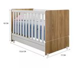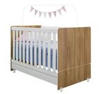 Berço Mini Cama Encanto, Certificado pelo Inmetro 0033/001368-2020, seu padrão é de berço americano e posteriormente poderá ser transformado em uma mini cama, estrutura em MDP bio-sustentável de 15 mm de espessura, acabamento em pintura UV (Fosco e Alto Brilho). Superfícies e bordas lisas e arredondadas para evitar acidentes, estrado resistente em MDF, 02 regulagens de altura, grades fixas de MDF para melhor segurança do bebê, suporte para mosqueteiro, suporta até 30 Kg, possui 04 rodízios sendo dois com trava, transforma-se em mini cama acompanhando o crescimento do seu filho, acompanha colchão medindo 70cm x 130cm certificado pelo INMETRO, espuma 100% poliuretano flexível, revestimento em tecido poliéster, com bordado contínuo, densidade D18, com uma face em plástico que protege a superfície contra a penetração de líquidos, tratamento antialérgico, produzido com Alto Controle de Qualidade Garantindo segurança e conforto para seu bebê. Este móvel chegará em sua casa separado em 03 volumes.