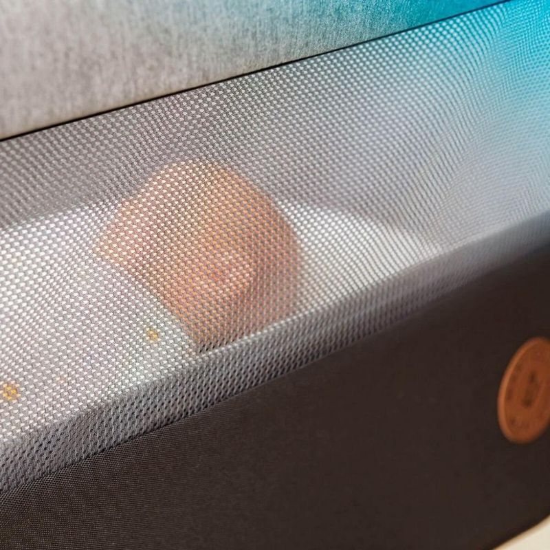 Discreto, o Iora está diponível em cores neutras e com estrutura em alumínio revestida com acabamento estilo madeira, que combina com qualquer decoração do quarto dos pais. Extremamente prático, é dobrável, podendo ser desmontado e armazenado debaixo da cama ou em outros espaços estreitos, ou mesmo com a bolsa de transporte ser levado em viagens.