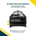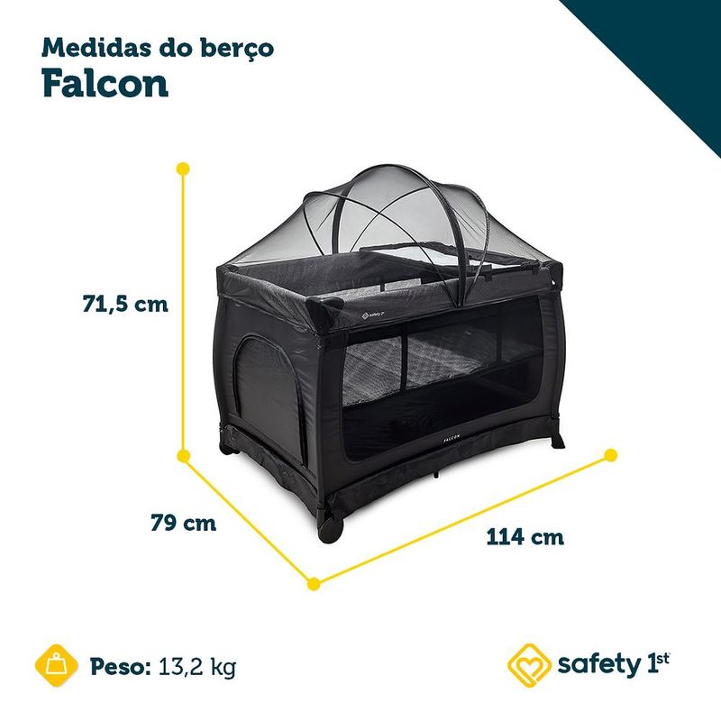 O Falcon é um berço portátil feito para quem quer praticidade desde o primeiro dia. Com capacidade para 20kg — a maior suportada no mercado —, ele é o maior da categoria e conta com duas alturas para acompanhar as diferentes fases do crescimento do bebê e facilitar o cuidado. O fechamento automático é um dos grandes diferenciais: leve, rápido e funcional. Ele também tem entrada montessoriana, mosquiteiro arcado com abertura central, facilitando a retirada do bebê, e trocador acoplado, entregando tudo o que precisa no mesmo produto. -O maior berço da categoria: mais espaço e conforto para o bebê.