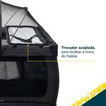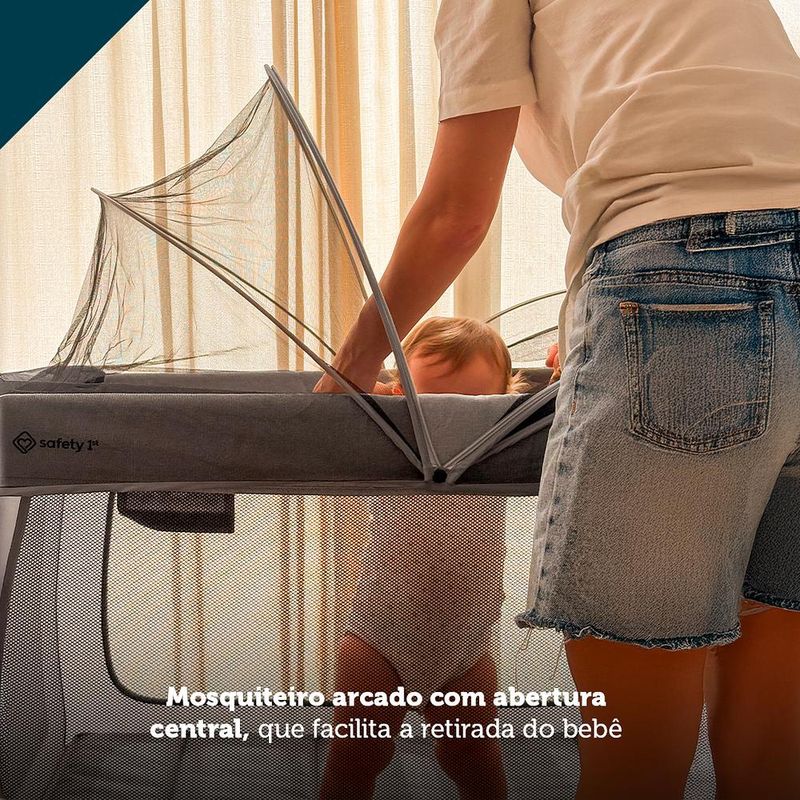 -Mosquiteiro arcado com abertura central, que protege contra insetos e facilita a retirada do bebê.