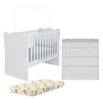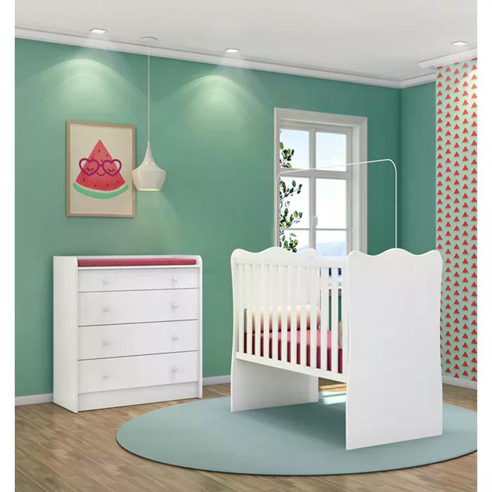 Jogo de quarto infantil, com um design lindo e sofisticado, deixando o ambiente ainda mais moderno e aconchegante. Estrutura em MDP de 15mm e 12mm, feito com material ecológicamente correto, para melhor durabilidade e resistência às peças, pintura atóxica livre de materiais pesados, e excelente acabamento UV (Brilho). Composto por gavetas externas com corrediças metálicas, puxadores em plástico com formato de estrela, trocador embutido que garante mais praticidade no dia-dia, bordas arredondadas em perfil PVC, estrado do berço em MDF de 6mm com altura regulável em três opções: 1ª: 35cm 2ª: 48cm e 3ª: 61cm, travessas em MDF de 25mm, suporte para mosquiteiro, sistema anti-tombamento para evitar riscos de acidentes, colchão com espuma 100% poliuretano flexível, revestido em tecido poliéster com bordado contínuo, densidade D18, e tratamento antialérgico com face em plástico que protege a superfície contra a penetração de líquidos. O berço é certificado pelo InMetro. Mais produtos da linha infantil Doce Sonho, você encontra em nosso site, podendo fazer a composição completa para o quarto do seu (sua) filho (a). Estes móveis chegarão em sua casa separados em 04 volumes.