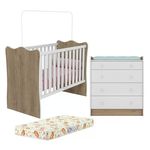 Jogo de quarto infantil, com um design lindo e sofisticado, deixando o ambiente ainda mais moderno e aconchegante. Estrutura em MDP de 15mm e 12mm, feito com material ecológicamente correto, para melhor durabilidade e resistência às peças, pintura atóxica livre de materiais pesados, e excelente acabamento UV (Brilho). Composto por gavetas externas com corrediças metálicas, puxadores em plástico com formato de estrela, trocador embutido que garante mais praticidade no dia-dia, bordas arredondadas em perfil PVC, estrado do berço em MDF de 6mm com altura regulável em três opções: 1ª: 35cm 2ª: 48cm e 3ª: 61cm, travessas em MDF de 25mm, suporte para mosquiteiro, sistema anti-tombamento para evitar riscos de acidentes, colchão com espuma 100% poliuretano flexível, revestido em tecido poliéster com bordado contínuo, densidade D18, e tratamento antialérgico com face em plástico que protege a superfície contra a penetração de líquidos. O berço é certificado pelo InMetro. Mais produtos da linha infantil Doce Sonho, você encontra em nosso site, podendo fazer a composição completa para o quarto do seu (sua) filho (a). Estes móveis chegarão em sua casa separados em 04 volumes.