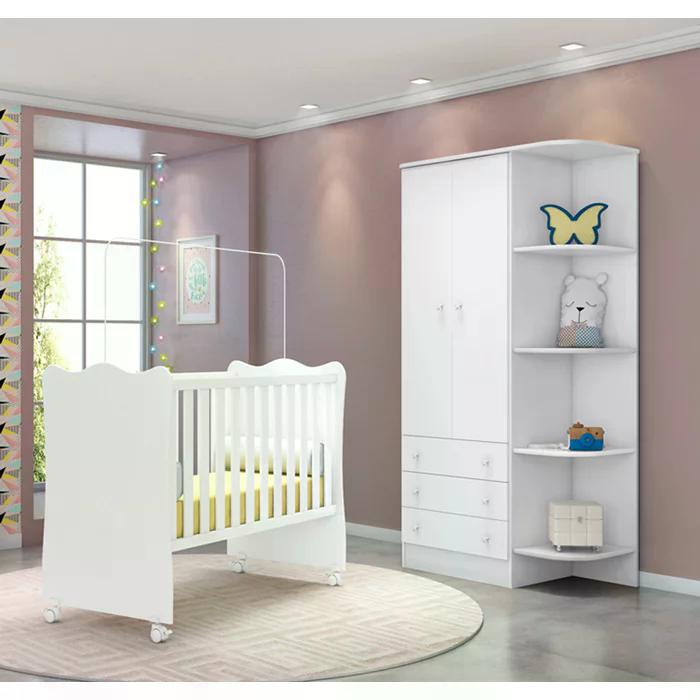 Berço Simples 1 E Guarda Roupa 825 Doce Sonho Branco Com Rodizios Qmovi