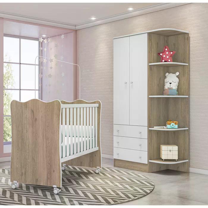 Jogo de quarto infantil, com um design lindo e sofisticado, deixando o ambiente ainda mais moderno e aconchegante. Estrutura em MDP de 15mm e 12mm, feito com material ecológicamente correto, para melhor durabilidade e resistência às peças, pintura atóxica livre de materiais pesados, e excelente acabamento UV (Brilho). Composto por portas de bater com dobradiças metálicas, cabideiro oblongo metálico, ótima divisão interna para roupas, gavetas externas com corrediças metálicas, puxadores em plástico com formato de estrela, bordas arredondadas em perfil PVC, cantoneira, prateleiras para melhor organização, estrado do berço em MDF de 6mm com altura regulável em três opções: 1ª: 35cm 2ª: 48cm e 3ª: 61cm, travessas em MDF de 25mm, suporte para mosquiteiro, 04 rodízios de plástico, sendo 02 com trava de segurança e 02 sem trava de segurança, e sistema anti-tombamento para evitar riscos de acidentes. O berço é certificado pelo InMetro, e o colchão indicado é de 130x60. Mais produtos da linha infantil Doce Sonho, você encontra em nosso site, podendo fazer a composição completa para o quarto do seu (sua) filho (a). Estes móveis chegarão em sua casa separados em 05 volumes.