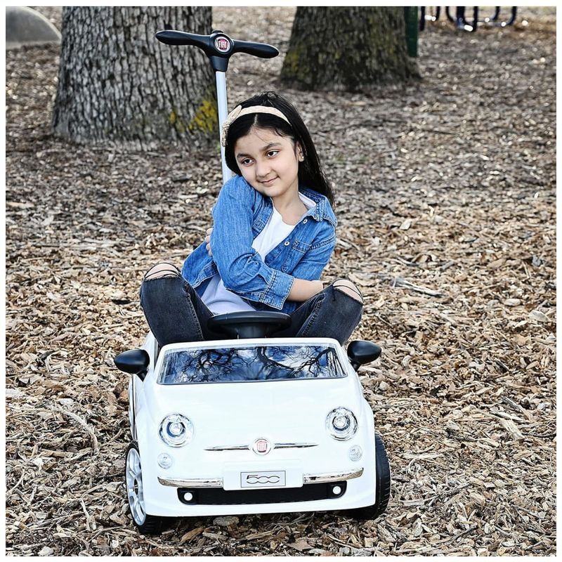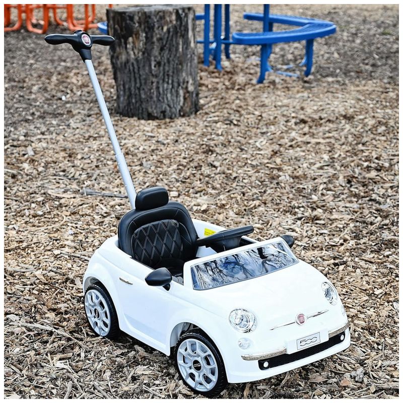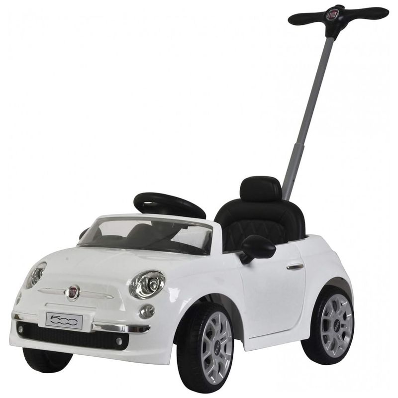 O carro de empurrar Fiat 500 licenciado vem com carrinho de passeio, apoio para os pés ajustável, alça ajustável, buzina e música, portas abertas