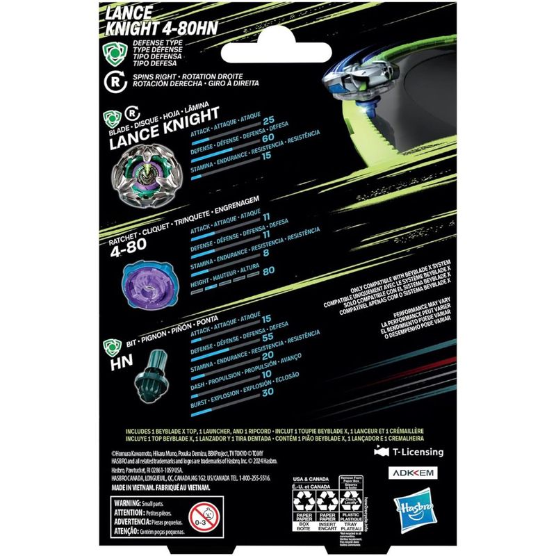 Toda a emoção da nova geração de arenas, lançadores e piões Beyblade: Este kit Inicial Beyblade X inclui 1 pião Lance Knight 4-80HN tipo defesa e giro à direita e 1 lançador (requer Arena Beystadium required, vendida separadamente). Entrar direto na batalha ou personalizar as camadas intercambiáveis da lâmina, engrenagem e ponta com outros piões Beyblade X (vendidos separadamente). O Beyblade X traz o sistema de engrenagem X-Celerator para elevar a batalha. Quando as engrenagens do pião Beyblade X encontram a guia da arena Beystadium, os piões são lançados com um avanço Xtreme e alcançam velocidades surpreendentes que geram eclosões incríveis e impactos colossais. Os fãs lançam os seus piões em batalhas selvagens contra os seus oponentes. O primeiro a marcar 4 pontos é o vencedor. Os brinquedos Hasbro Beyblade com metal fundido Takara Tomy autêntico são excelentes presentes para meninos e meninas a partir dos 8 anos. Hasbro and all related trademarks and logos are trademarks of Hasbro, Inc.