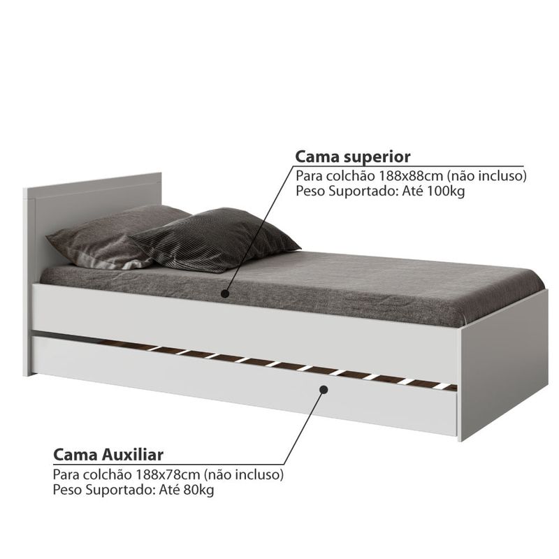 - Cama inferior: Para colchão 78x188 cm (vendido separadamente)