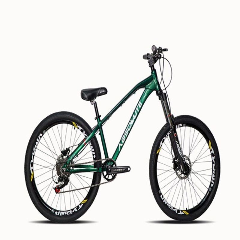 Bicicleta Absolute Brutus Aro 26 1x8 Cassete Freio Hidráulico Verde- Foto Meramente Ilustrativa;- Marca: Absolute Brutus Dirt Jump ;;- Quadro Alumínio;- Idade recomendada: Juvenil/Adulto;- Gênero: Unissex;- Aro: 26;- Velocidades: 1x8;- Garfo: Suspensão Absolute Brutus ;;- Guidão: Alfameq Aço carbono ;;- Freios: Disco Hidraulico;- Rodas:Vmaxx ;;- Câmbios: Shimanos ;;- Manoplas: Mtb ;;- Corrente: Index;- Selim: Mtb ;;- Trocador: Rapid Fire 8 velocidades;- Pedivela: Aluminio;- Pneus: Mtb com cravo Balão 2.125;- Pedal: Nylon Mtb