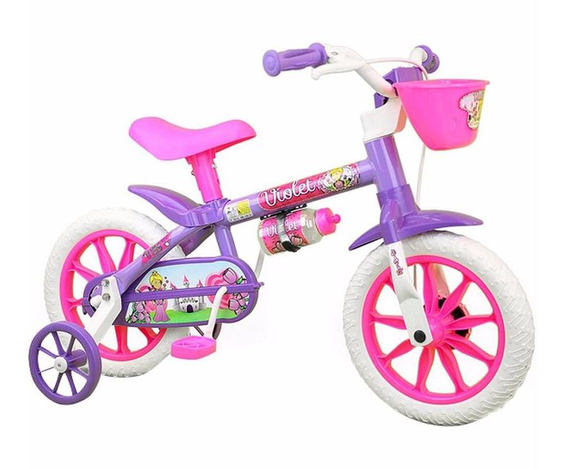 A Bicicleta Aro 12 Violet da Nathor e equipada com os melhores itens de seguranca e conforto das criancas. O selim possui regulagem de altura o qual deve ser regulado para que a crianca mantem os pes no chao. Desta forma ela se sente mais segura e assim sair pedalando com mais confianca. Possui limitador de giro do guidao, importante caracteristica que evita com que guidao de uma volta completa e danifique o freio, alem de preservar a integridade fisica da crianca. Possui tambem freio a tambor, garrafinha, pneus em EVA, quadro, garfo e guidao em aco carbono, mesa de direcao com regulagem de angulo, cestinha e cores alegres. Tudo o que a crianca precisa para se divertir com seguranca e conforto.