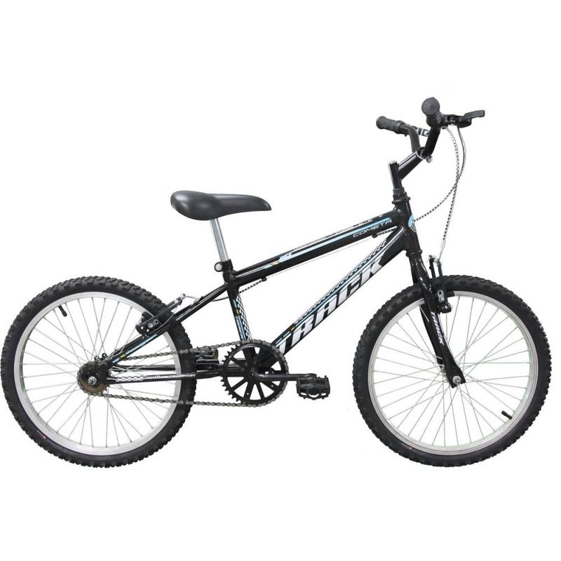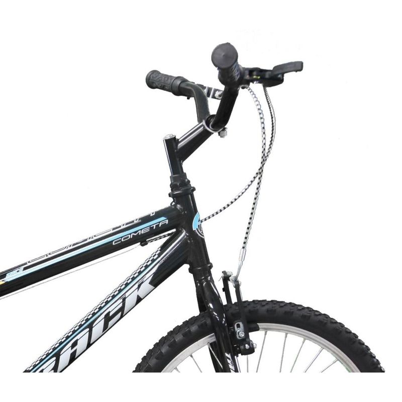 A bicicleta COMETA vem equipada com rodas aro 20 de alumínio e os freios dianteiro e traseiro são V-break garantindo uma frenagem mais precisa com manetes de plástico.