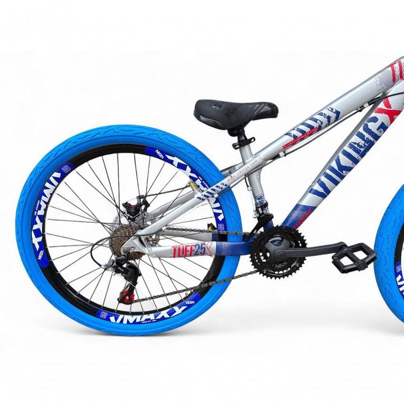 Bicicleta Aro 26 Vikingx Tuff X25 Freeride 21v Aros Vmaxx Dh Freio A Disco Pneu Flame - Preta/azul