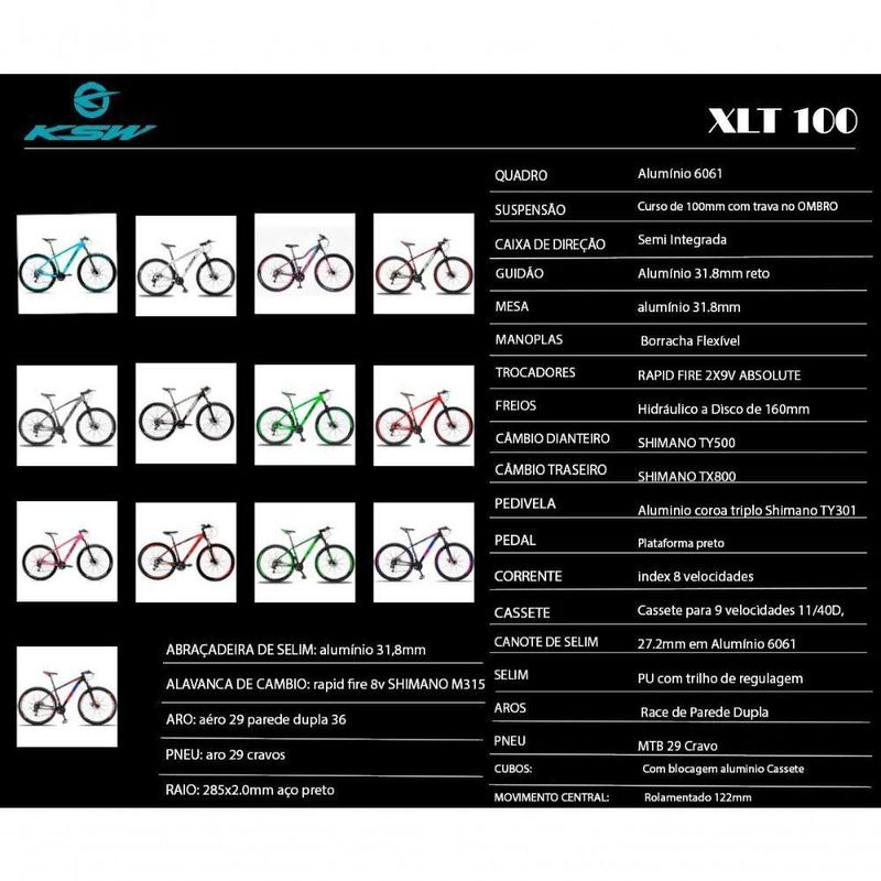 A KSW é uma bicicleta Aro 29 com freio a disco desenvolvida para atender sua necessidade do dia a dia e um bom começo nas primeiras trilhas da categoria MTBQUADRO: alumínio 6061