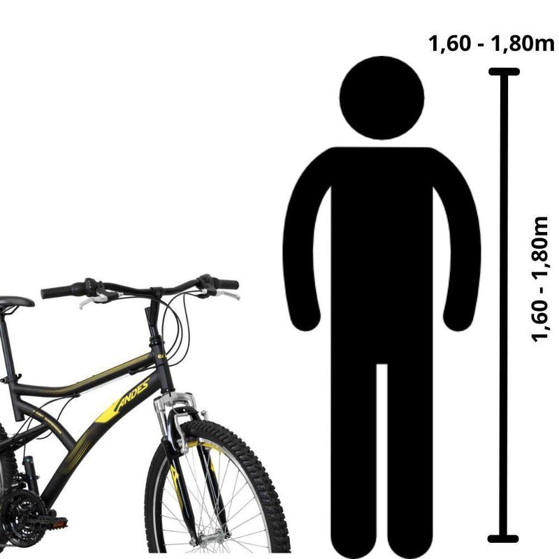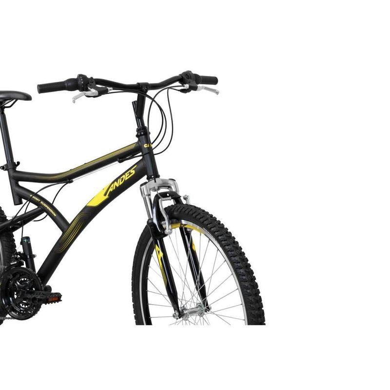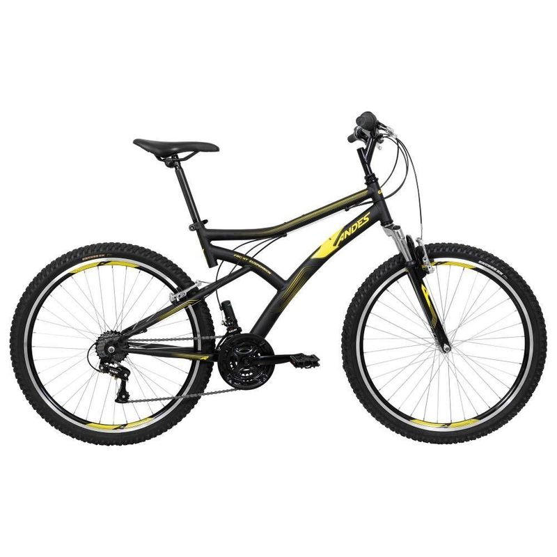 Bicicleta Caloi Andes Preto Aro 24 — Pronta para qualquer desafioA Bicicleta Caloi aro 26 é a escolha perfeita para quem busca uma solução de mobilidade para o dia a dia ou uma companheira para os passeios de fim de semana. Projetada para o ritmo da cidade, ela une conforto, estilo e um design funcional na cor preta com detalhes em amarelo.Sua suspensão traseira absorve as irregularidades do asfalto, proporcionando um pedal mais suave, enquanto os pneus do tipo MTB garantem mais aderência e segurança em diferentes superfícies urbanas. Com um sistema de 7 velocidades, você tem as marchas ideais para enfrentar as subidas da cidade e pedalar com mais eficiência no plano.A segurança é garantida pelos freios V-Brake, que oferecem uma resposta de frenagem rápida e precisa. Construída com um quadro de aço resistente, é uma bicicleta feita para acompanhar sua rotina por muito tempo, oferecendo a durabilidade necessária para o uso diário.Especificações Técnicas: