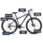 Equipado com sistema de câmbio Shimano de 21 velocidades, você pode ajustar a marcha de acordo com a dificuldade do percurso, garantindo um desempenho superior em subidas, descidas e terrenos irregulares. O quadro de alumínio proporciona leveza e resistência, enquanto o sistema de freios a disco oferece maior segurança e controle.