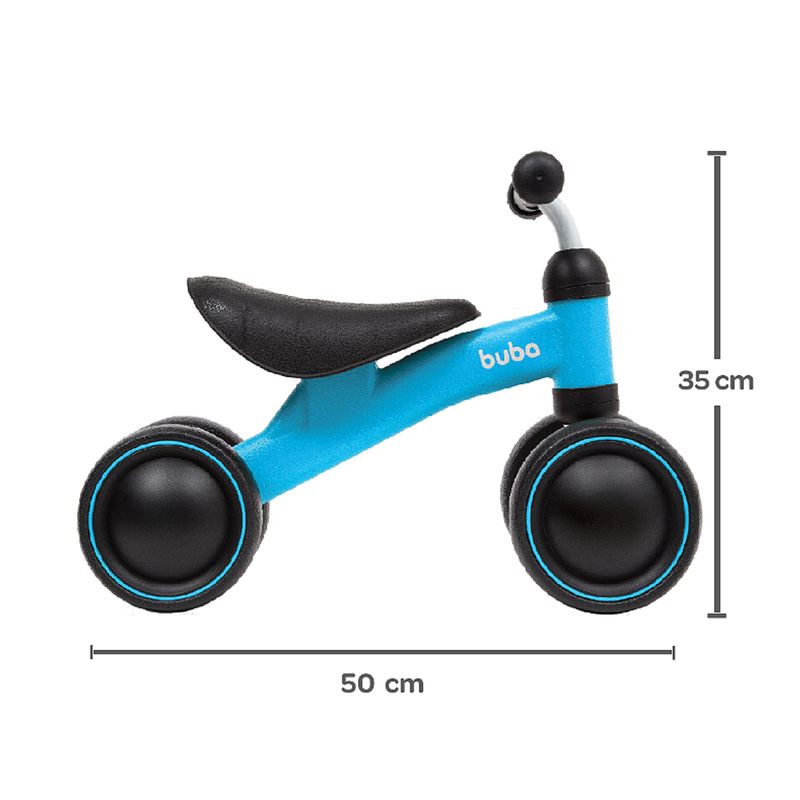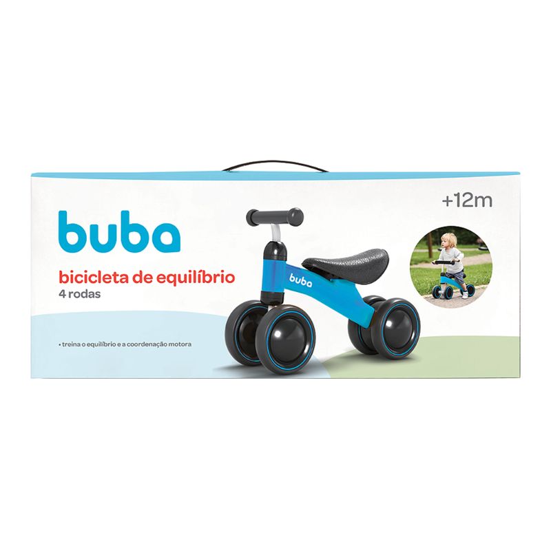 A Bicicleta de Equilíbrio 4 Rodas da Buba estimula o equilíbrio e a coordenação motora do pequeno de forma divertida e segura. É estável, com rodas duplas na frente e atras. A criança aprende desde cedo a se equilibrar e adquire autoconfiança, facilitando a transição para a bicicleta com pedais. INFORMAÇÕES ADICIONAIS: Features - Guidão móvel e macio Assento anatômico Rosas silenciosas e com calotas Estrutura em metal Treina o equilíbrio e a coordenação motora Faixa etária - 12 meses Composição - Base: 100% Acrilonitrila Butadieno Estireno (ABS); Assento: 100% Polipropileno (PP), Guidão (Parte Macia): 100% Espuma Vinílica Acetinada (EVA), Guidão (Parte Metálica), Parafuso e Eixo: 100% Metal Altura (cm) -35 Largura (cm) - 20 Profundidade (cm) -50 Embalagem - Caixa Altura Embalagem (cm) - 19,5 Largura Embalagem (cm) - 47 Profundidade Embalagem (cm) - 16 Peso com Embalagem (kg) -1,89