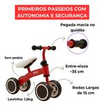 As rodas rodam macias em pisos lisos e a condução é intuitiva, ajudando a desenvolver coordenação, noção de direção e confiança.