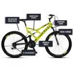 Bicicleta Gps 148 Dupla Suspensão E Freios V-brake, Aro 26 Aero, 36 Raias, 21 Marchas Colli Amarelo Neon