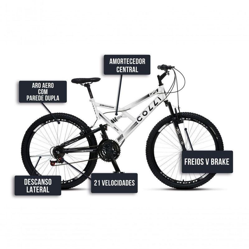 Bicicleta Gps 148 Dupla Suspensão E Freios V-brake, Aro 26 Aero, 36 Raias, 21 Marchas Colli Branco
