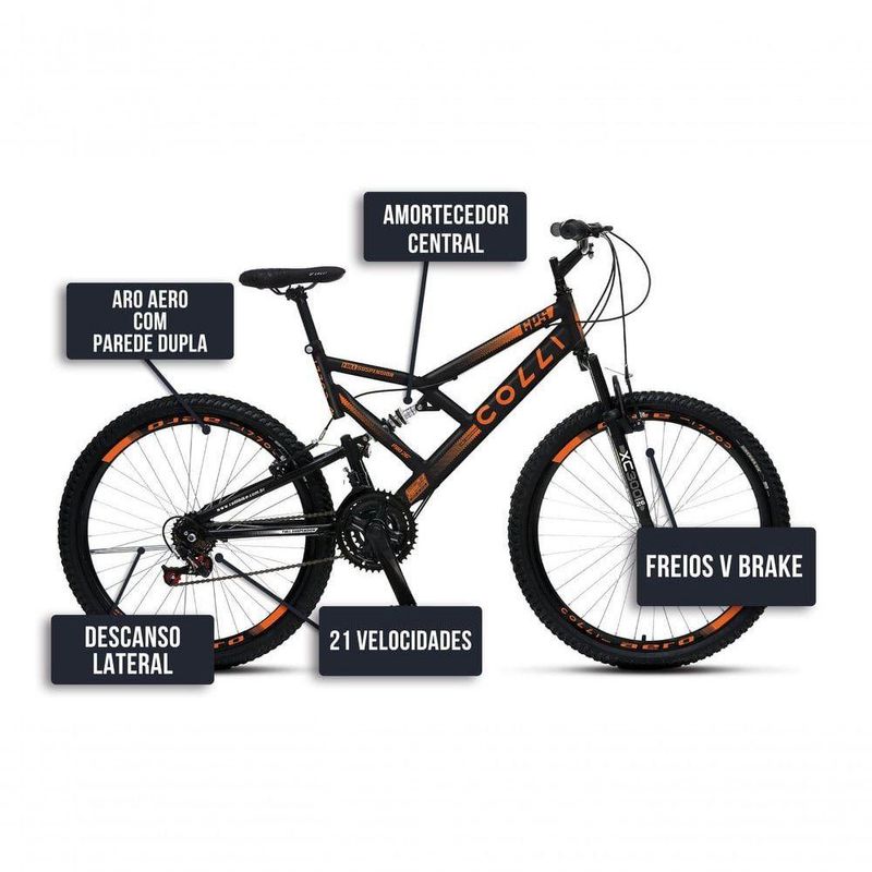 Bicicleta Gps 148 Dupla Suspensão E Freios V-brake, Aro 26 Aero, 36 Raias, 21 Marchas Colli Preto/laranja