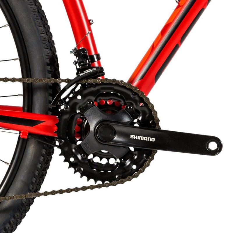 Você encontrou a bike ideal para iniciar em um novo esporte e encarar novos desafios! Supere seus limites com a bicicleta Groove Hype 30 aro 29 de 21 marchas e com freio a disco hidráulico. Com essa bike você vai se divertir e conhecer muitos lugares incríveis com seus amigos do pedal! Componentes ShimanoA bike Groove Hype 30 é composta por componentes da marca mundial Shimano. Os câmbios traseiro e dianteiro da marca Shimano deixam a sua pedalada muito mais suave e confortável com as 21 marchas. Cockpit e FreiosO cockpit da bicicleta Groove Hype 30 21 marchas com guidão de 700mm oferece mais controle e confiança durante a sua pedalada. A suspensão Groove com trava proporciona praticidade em suas trilhas.Freios a disco hidráulicos te dão uma maior segurança e tranquilidade durante a frenagem. Quadro da bike: garantia e detalhesO quadro da bike Groove Hype 30 é em alumínio, com cabeamento interno e possui Garantia Vitalícia Limitada ao primeiro proprietário da bicicleta. Clique aqui para saber mais sobre a Garantia Vitalícia Limitada do quadro e sobre como validar. Os demais componentes possuem 6 meses de garantia. Disponibilidade da Groove Hype 30 21 marchasQuadro tamanho 17, cor vermelho, laranja e preto, com pneus Chaoyang aro 29 e pesa aproximadamente 15kg.É uma bicicleta que já vem pronta para as trilhas do dia-a-dia! *As imagens são meramente ilustrativas.*As especificações técnicas podem sofrer variações ou mesmo alterações sem aviso prévio. QuadroGroove Alumínio cabeamento interno "Garantia Vitalícia"SuspensãoGroove 80mm crown Alloy c/ trava no ombroTrocadorAL-M210 3/7v ou Shimano SL-M315 3/7VCâmbio TraseiroShimano RD-TY300 7VCâmbio DianteiroShimano FD-TZ500 3VPedivelaShimano FC-TY301 42/34/24TCassete ou Roda LivreRoda Livre 7v 13-34 ou Roda Livre Shimano MF-TZ500 14-34DCorrenteTAYA TB-50Alavanca de FreioBL-M220FreioDisco hidráulico M220Movimento CentralGroove Selado "smooth Tunning"CubosGroove Alumínio 32FPedalPlástico ConfortoRaiosAço pretoArosGroove Aluminio Parede Dupla 32FGuidãoGroove Aço 31.8mm 700mmMesaGroove Alumínio 31.8mmCanoteGroove Alumínio 27,2mmAbraçadeira de selimGroove Blocagem alumínio 31,8mmSelimGroove MTBPneuChaoyang MTB 29"x 2.0"Peso15kg aprox.