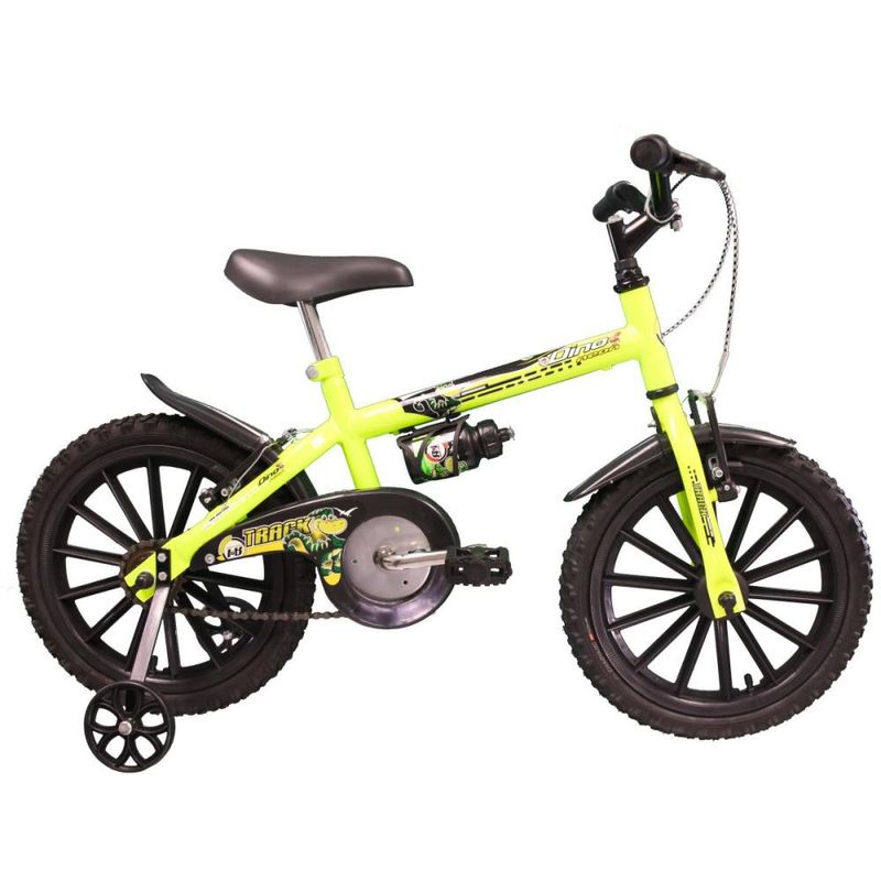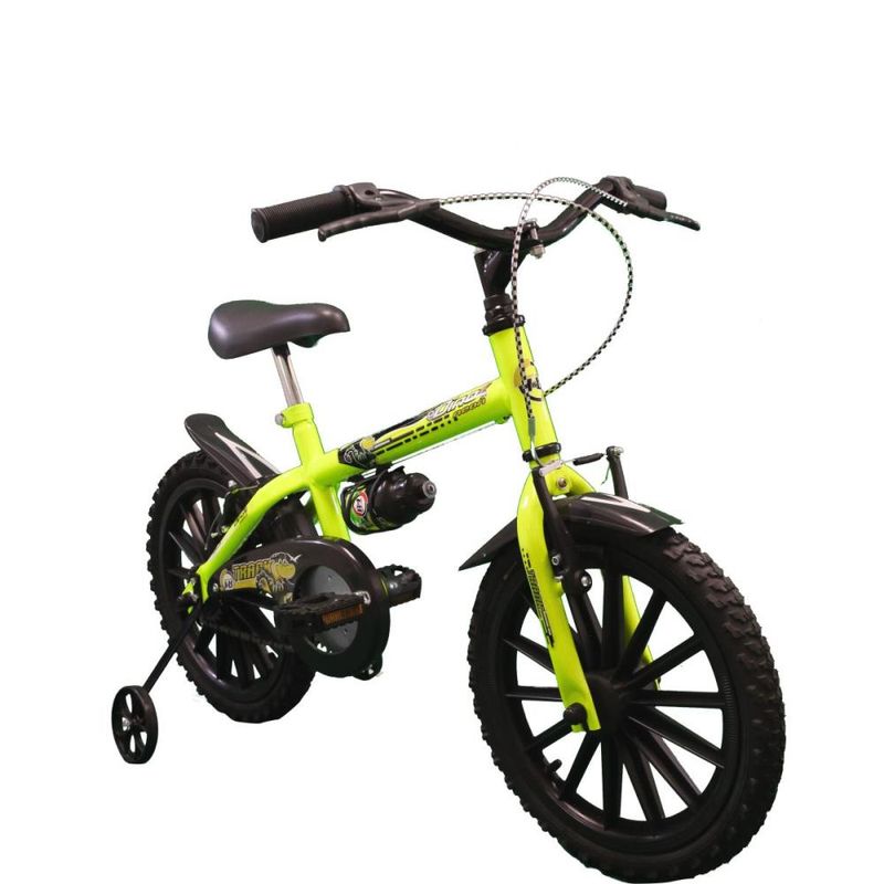 A bicicleta DINO NEON aro 16 é composta por rodas de plástico reforçado, já vem com rodinhas laterais para auxiliar no equilíbrio da criança, para-lamas dianteiro e traseiro, freio dianteiro e traseiro V-Break com manetes de plástico garantindo uma frenagem mais precisa além de acompanhar uma garrafinha e opções vibrantes de cores. Certificado de garantia INMETRO e suportam até 30Kg.