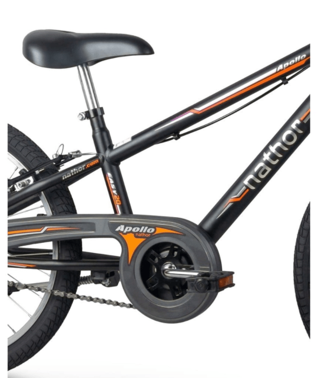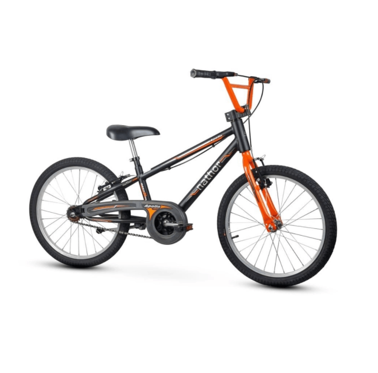 A Bicicleta Aro 20 Apollo com Pezinho da Nathor, conta com movimento central descolado, um diferencial que ajuda muito na hora do pedal. Proporcionando um conforto maior. Seus freios V-Brake e maçaneta em alumínio garante uma ótima rigidez, fazendo com que sua frenagem seja muito mais eficiente e segura para não sofrer deformação. Conta com pezinho para descanso e um exclusivo protetor de corrente, que levam muito mais segurança e conforto. Seus pneus possuem câmera e aros em alumínio e seu quadro é em aço carbono.
