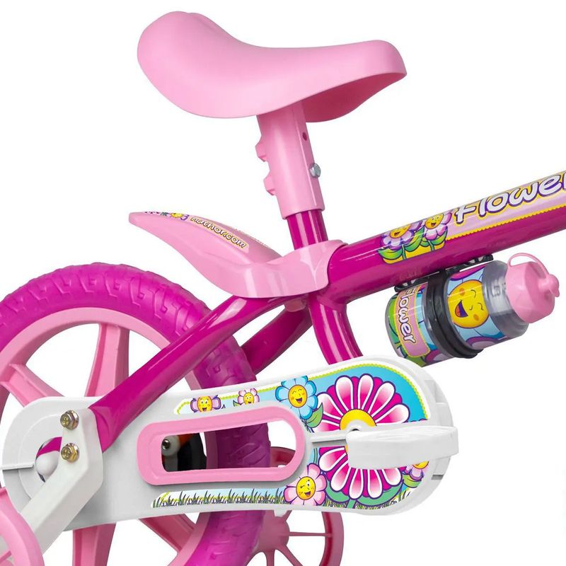 Possui freio a tambor, garrafinha, pneus em EVA, quadro, garfo e guidão em aço carbono, mesa de direção com regulagem de ângulo, cestinha e cores alegres. Tudo o que a criança precisa para se divertir com segurança e conforto.