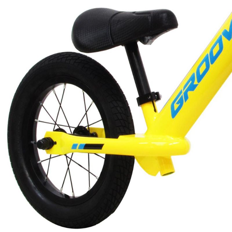 Com a mesma qualidade de todos os produtos, a Balance da Groove tem quadro em aço, aro 12 com rodas raiadas e pneus de borracha com câmara, proporcionando muito mais segurança.