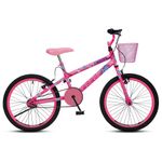 Bic. Jully aro 20 aero, tamanho 20 aço carbono, freio v-break, pedivela monobloco 140x15mm, selim toy pvc rosa com canote, descanso lateral, cestinha, guidão donwhill aço, coroa 40d sem marcha, roda livre 1v 18d, manopla mirim, corrente grossa, pedal 1/2, movimento de direção comum e movimento central com colar.