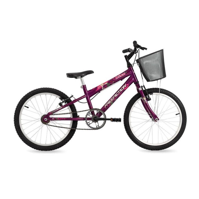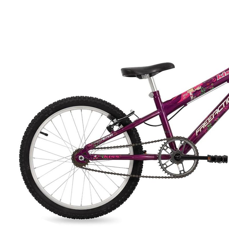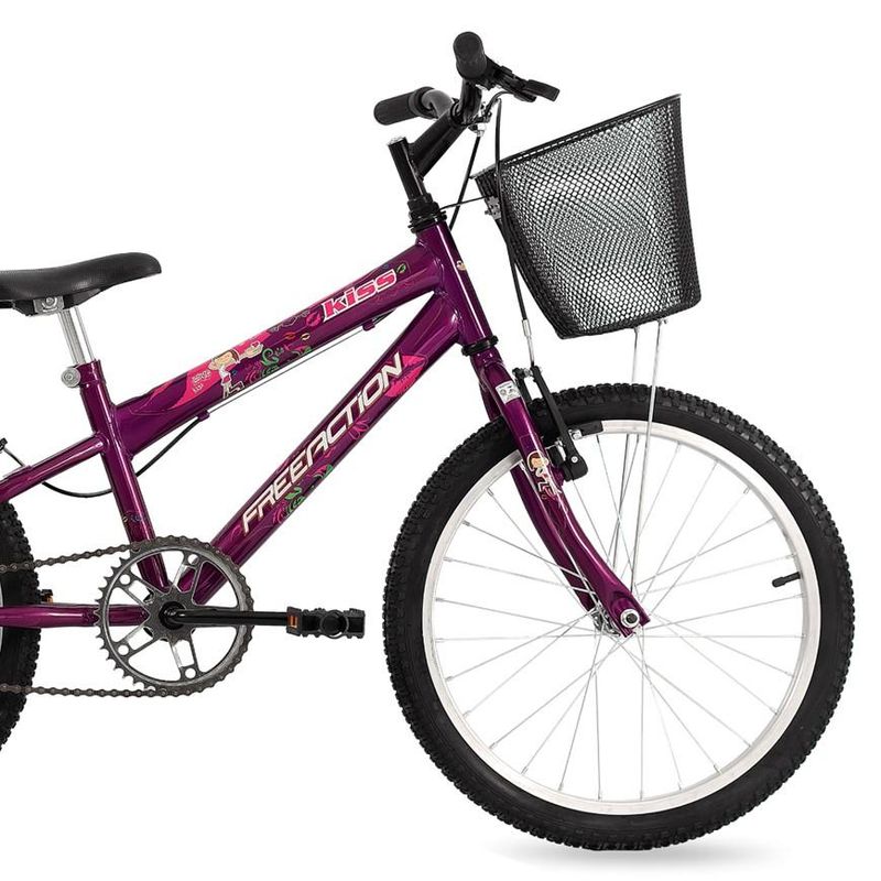 Conta com cores femininas e adesivagem com gliter que garante muito mais delicadeza. As manoplas oferecem uma pegada anatômica, enquanto os pneus antiderrapantes promovem mais segurança durante a pedalada. A bicicleta é formada com componentes de alta qualidade e desempenho, para as meninas aproveitarem ao máximo os seus momentos de lazer. Possui cesta removível que foi projetada pensando nas meninas, que poderão levar seus brinquedos e bonecas para todo lado deixando essa bike muito mais atraente. Aposte em uma brincadeira saudável e estimule o pedal ao ar livre com a Bicicleta Free Action aro 20 Kiss. Aproveite!