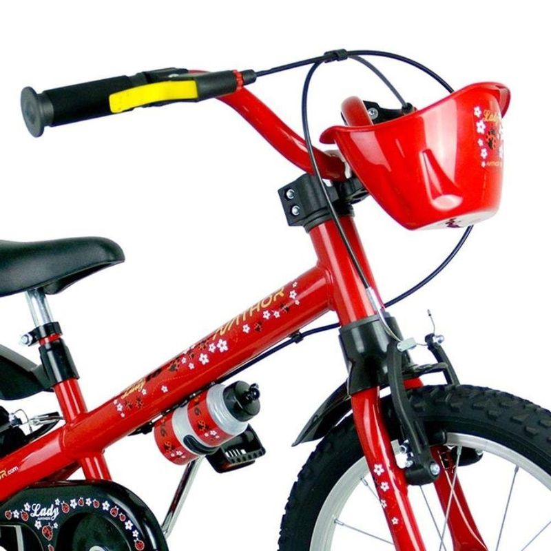 Bicicleta Lady Aro 16 - Nathor As crianças vão adorar brincar e se divertir com a Bicicleta Lady Aro 16 da Nathor! Bicicleta Aro 16 com cor em destaque para freio traseiro. Limitador de giro do guidão, freios v-brake: dianteiro e traseiro, regulagem de altura das rodas laterais e aros de aluminio. Idade recomendada: a partir de 5 anos de idade. Selo INMETRO: CE-BI/INNAC 00407-01A NM 301/2004.