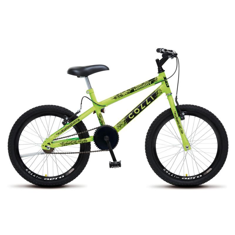 Bicicleta max boy aro 20 aero, tamanho 12 aco carbono, freio v-break, pedivela monobloco 140x15mm 36d, selim pvc mini toy, descanso lateral, guidão donwhill aço, manopla mirim, movimento central com colar, movimento dereção comum com colar, pedal 1/2, roda livre 1v 18d.