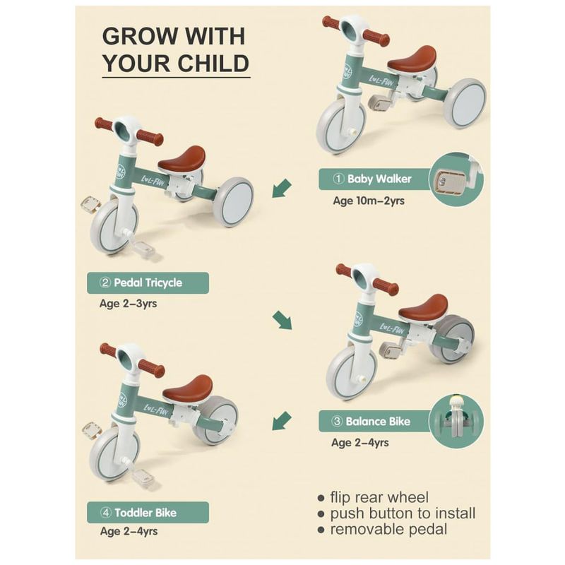 BABYMINI VEÍCULOSBICICLETA DE EQUILÍBRIOBicicleta sem Pedal Infantil com 3 Rodas para Crianças de 1 a 4 Anos, LOL FUN, Verde