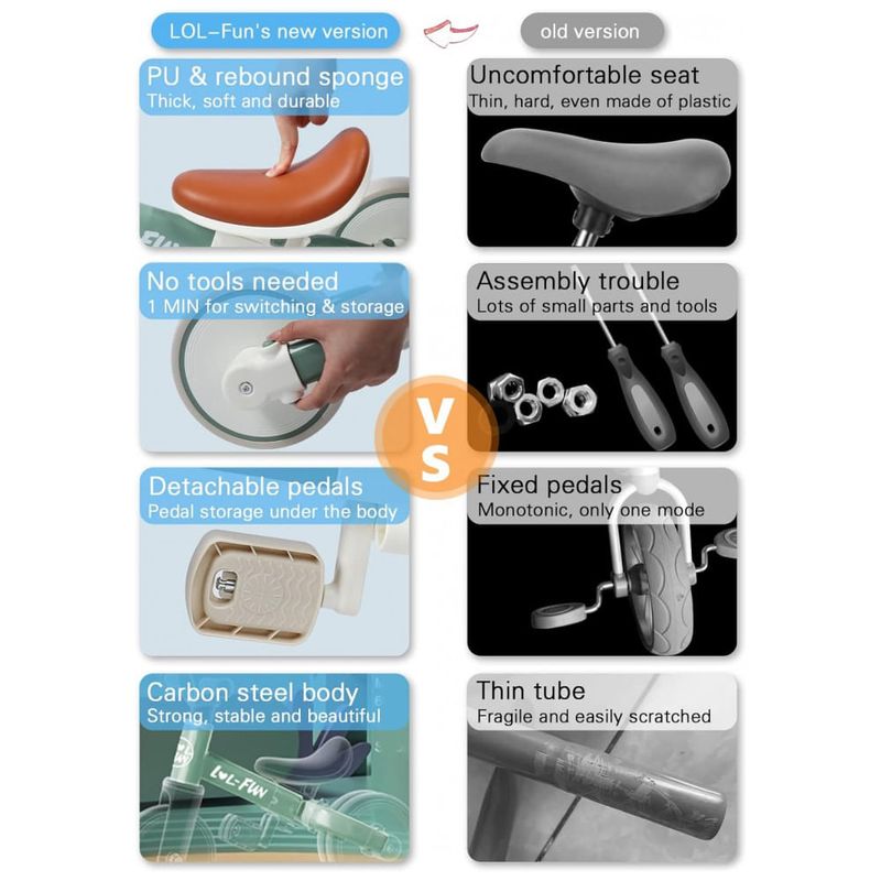 4 MODOS A criança recém móvel quer se mover de todas as maneiras possíveis. LOL FUN 4 em 1 bicicleta de equilíbrio para meninos de 1 a 4 anos de idade, que permite que as crianças corram ou rolem, são um presente de primeiro aniversário ideal no caminho para pedalar bicicletas, ajudando os a desenvolver força, equilíbrio e nervos enquanto eles aprender a dirigir e ajustar sua velocidade.