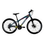 Bicicleta Tuff25 Freeride Aro 26 Azul/Amarelo Freio à Disco 21 Velocidades Câmbios Shimano VikingX Foi projetada para quem quer uma bike de personalidade e estilo inigualável. Ela oferece ao ciclista quadro diferenciado e design arrojado e exclusivo. Com qualidade, ela vem equipada de com 21 velocidades, permitindo ao ciclista a escolha da marcha ideal de acordo com o local. O design moderno pode ser observado no quadro da bike e os pneus são confeccionados em MTB com aro 26, garantindo segurança total a cada manobra em qualquer tipo de terreno. A bicicleta vem regulada, ficando por conta do comprador apenas ajuste de canote / selim / guidão e inserção da roda dianteira, em caso de dúvida aconselhamos a procura por pessoa especializada para a montagem, caso isto ocorra, fica por conta do comprador a referida montagem. Especificações técnicas: - Marca: Viking - Idade recomendada: Juvenil/adulto - Gênero: Unissex - Aro: 26 - Quadro: Alumínio - Marcha: 21 marchas - Garfo: Suspensão - Guidão: Aço carbono MTB - Freios: Disco - Rodas: Freeride - Cambios: Shimano - Manoplas: MTB - Corrente: Index - Selim: MTB Preto - Trocador de marcha: Rapid Fire - Pedivela: Importado - Pneus: MTB 26" - Pedal: Plástico MTB Conteúdo da embalagem: - 1 bicicleta - Manual de instruções Garantia: 3 meses Modelo: MTB Freeride