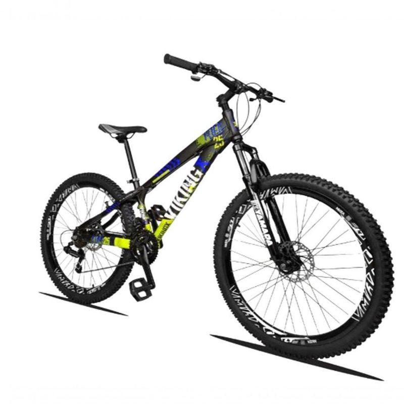 Bicicleta Vikingx Freeride Aro 26 Câmbios Shimanos 21v Preto Amarelo