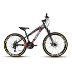 Foi projetada para quem quer uma bike de personalidade e estilo inigualável. Ela oferece ao ciclista quadro diferenciado e design arrojado e exclusivo. Com qualidade, ela vem equipada de com 21 velocidades, permitindo ao ciclista a escolha da marcha ideal de acordo com o local. O design moderno pode ser observado no quadro da bike e os pneus são confeccionados em mtb com aro 26, garantindo segurança total a cada manobra em qualquer tipo de terreno. QUADRO: VIKINGX Aluminio soldas reforçadas SUSPENSÃO: Importadas NÚMERO DE MARCHAS: 21 velocidades ALAVANCA DE CÂMBIO: Rapid Fire 7 velocidades Index CÂMBIO DIANTEIRO: Shimano Tourney 3 velocidades Index CÂMBIO TRASEIRO: Shimano Tourney 7 velocidades Index CORRENTE: Comum 7 velocidades Index PEDIVELA: Triplo Aço Index RODA LIVRE : Comum 7 velocidades Index MOV. CENTRAL: Rolamentado CAIXA DE DIREÇÃO: AHEAD SET GUIDÃO: Comum 31.8mm SUPORTE DO GUIDÃO: Comum 31.8mm MANOPLA: Simples Mtb FREIO: A disco mecanico PEDAL: Simples Mtb SELIM: Simples Mtb CANOTE DO SELIM: Aço AROS: VMAXX PNEU: KENDA FLAME COM BANDA