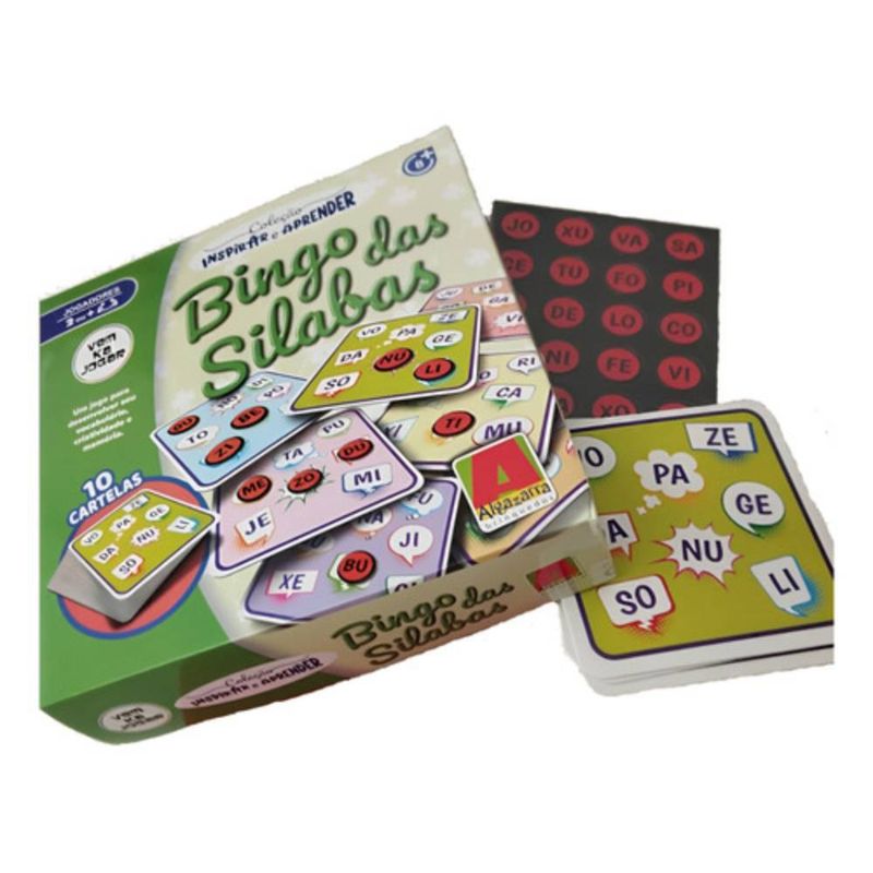 Conteúdo da embalagem: 10 cartelas, 80 peças com sílabas e 1 sacola para sorteio.