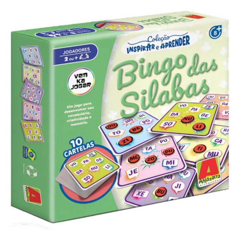 O Bingo das Sílabas Algazarra é um jogo educativo que estimula o vocabulário, a criatividade e a memória de forma divertida e interativa.