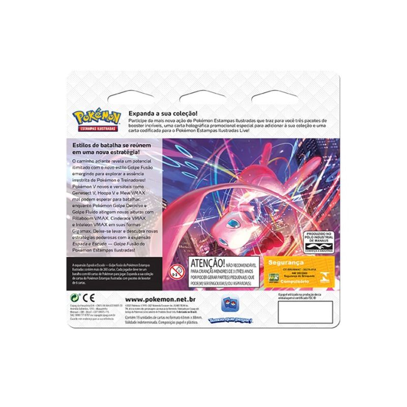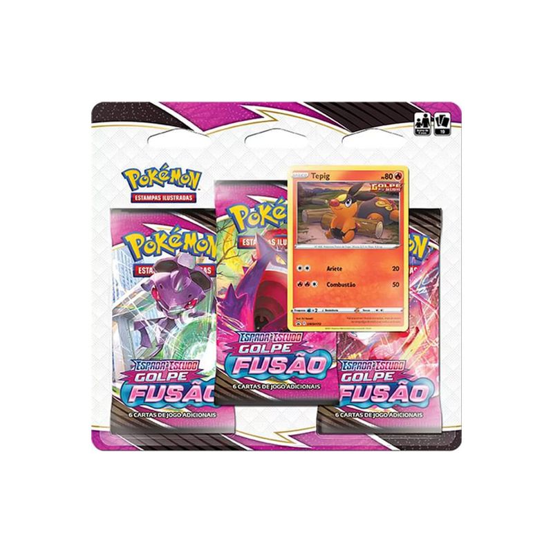 3 Pacotes de Booster de Golpe Fusão com cartas distribuidas aleatoriamente.