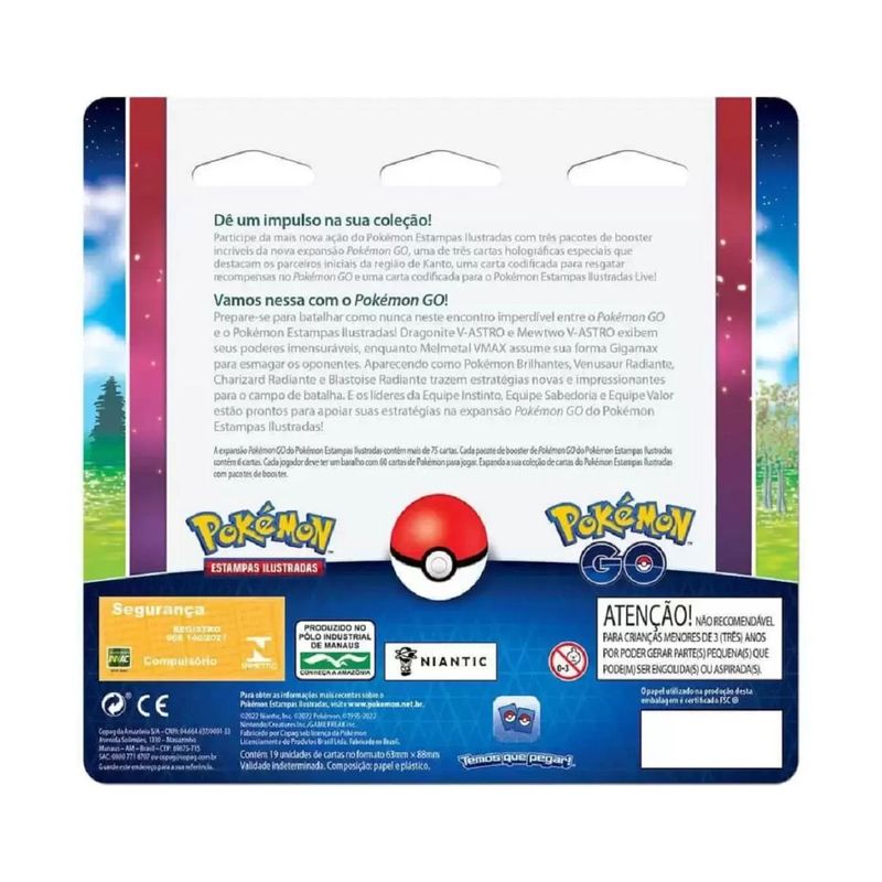 Dê um impulso na sua coleção! Participe da mais nova ação do Pokémon Estampas Ilustradas com três pacotes de booster incríveis da nova expansão Pokémon GO, uma de três cartas holográficas especiais que destacam os parceiros iniciais da região Kanto, uma carta codificada para resgatar recompensas no Pokémon GO e uma carta codificada para o Pokémon Estampas Ilustradas Live!