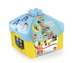 – Conteúdo da Embalagem: Contém: 1 casinha, 1 telhado de encaixe, 4 copos, 1 rostinho e 3 formas geométricas. Acompanha cartela de adesivos.