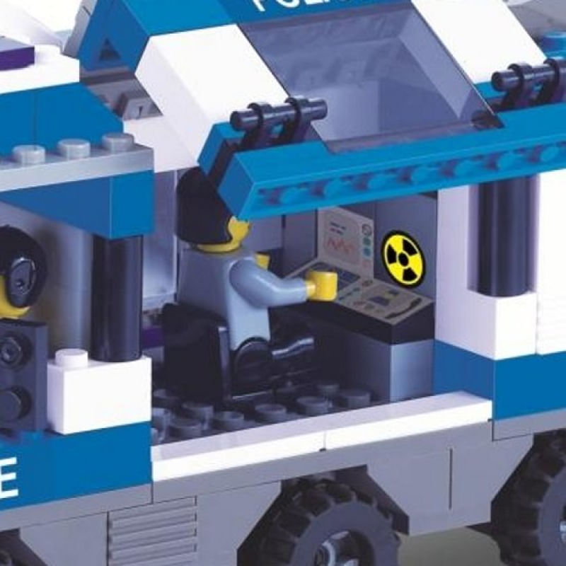 Kit completo para montar o posto de comando móvel da polícia, possui diversos detalhes incríveis como porta que abre para cima, cabine de piloto, e muito mais. Acompanha bonecos e diversos acessórios para interação com o kit. Composto por 268 peças no total.